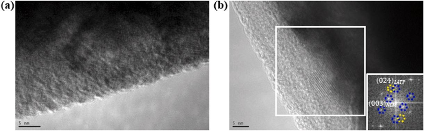 圖5 NCM粉末的LATP包裹層及其電子衍射譜圖