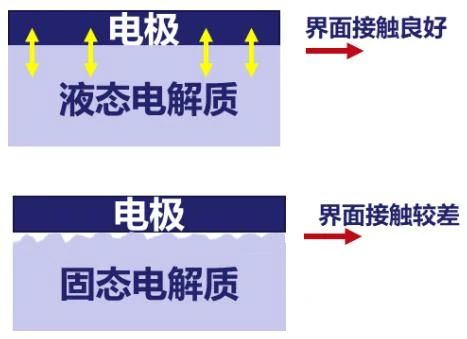 與液態電解液相比,固態電解質的電導率/鋰離子遷移率低 1~2個數量級,電導率低,全電池阻抗大,導致循環性能、倍率性能差。另外一方面,電極材料在充電時膨脹,放電時受擠壓,液態電解液—電極(液體—固體)接觸相對較好,而固態電解質—電極(固體—固體)難以保持長期穩定的接觸,并加大了固體電解質破裂或分離的可能,電池內阻較大。