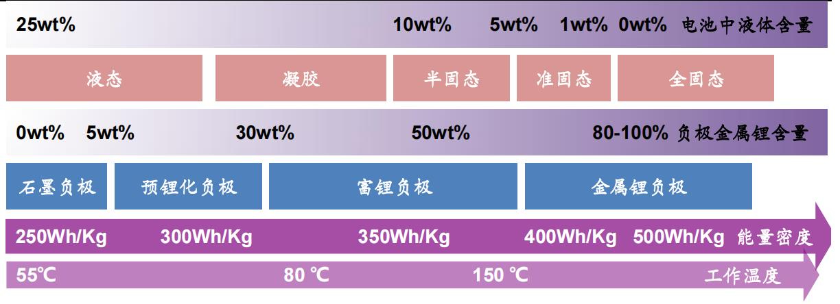 圖5在漸進式的路線中,由混合固液體系逐漸轉變為全固態體系,正負極材料體系能夠不斷拓展