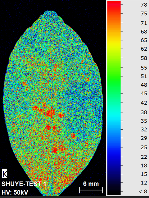 實(shí)驗(yàn)室工程師團(tuán)隊(duì),出于對葉片樣品中元素分布特征的研究興趣,特地采摘新鮮葉子(見下圖),進(jìn)行上機(jī)測試,部分?jǐn)?shù)據(jù)展示見下: