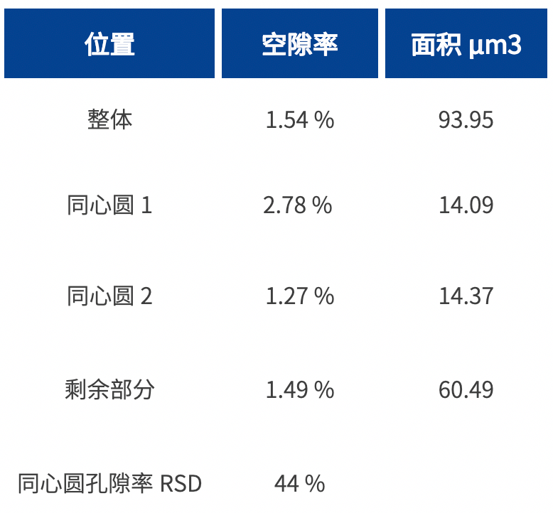 圖3:二次球截面孔隙率統(tǒng)計及RSD計算