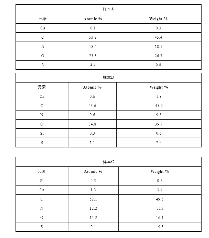 使用AxiaChemiSEM對樣本進行元素分析發現,樣本A與樣本B、C中的元素含量差異明顯,其中樣本A中的Ca含量較低,B、C中的Si含量較高,這說明樣本A的取樣者可能缺鈣,需要多攝入一些高鈣的食物。B、C的Ca含量正常,但頭發上含Si,說明使用的洗發產品含有硅油。