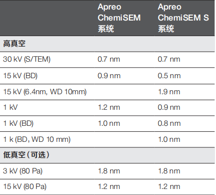 BD:電子束減速模式,WD:工作距離(除非另有說明,否則按ZUI佳工作距離提供分辨率)。默認情況下,ZUI終安裝后系統驗收測試條件為:高真空 1 kV 和 30 kV 條件 ,開 啟浸沒模式(如適用)。